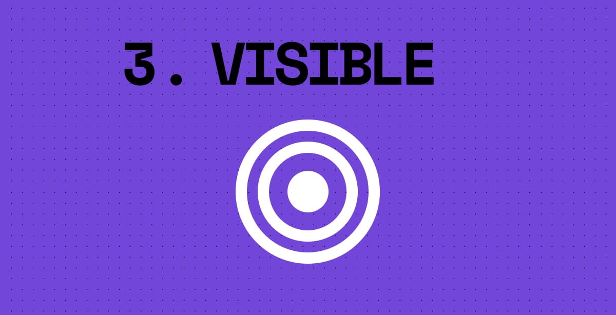 Visible means your market has a specific association with your name. When a particular topic comes up, your brand (or your people) often come up with it. This can manifest as getting speaking invitations through that you didn't apply for. Or journalists occasionally reaching out. Your content is shared by people outside your immediate network.