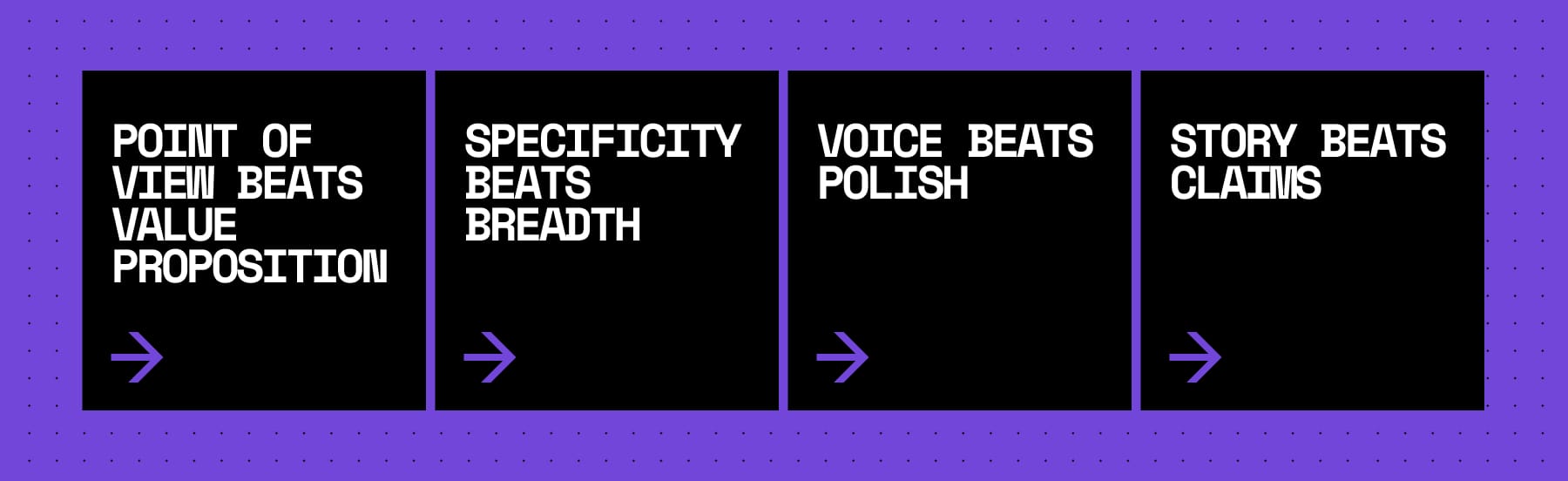 Most B2B brands have no discernible point of view at all. They believe in "quality" and "excellence" and "putting clients first." Which is another way of saying they believe in nothing.